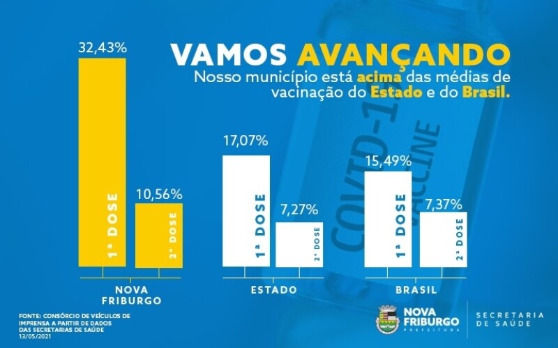 Nova Friburgo segue avançando e proporcionalmente mais adiantada que o Estado do Rio de Janeiro e o Brasil na campanha de imunização contra a Covi ...