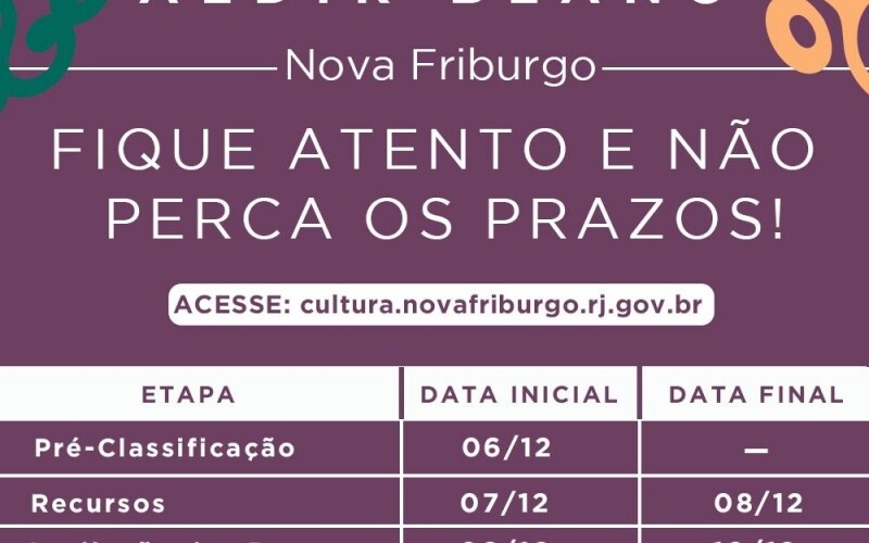 Editais e chamadas públicas começam a definir selecionados A Prefeitura de Nova Friburgo, através da Secretaria Municipal de Cultura, em parceria ...