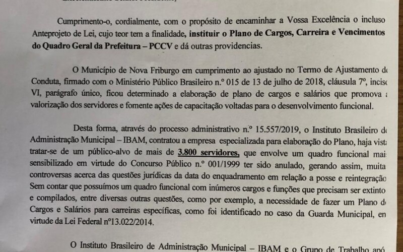 A Prefeitura de Nova Friburgo enviou para a Câmara de Vereadores nesta quinta-feira, 12 de novembro, o projeto que trata do plano de cargos, carr ...