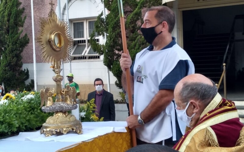 O Prefeito Renato Bravo recebeu a benção do Bispo Interino Dom Paulo no portão principal do Palácio Barão de Nova Friburgo na tarde des ...