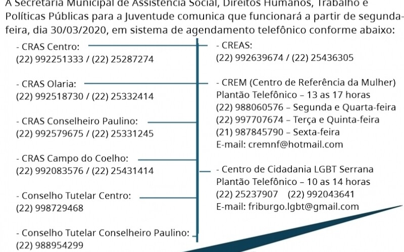 Os Centros de Referência de Assistência Social (Cras) de Nova Friburgo, em função das determinações do prefeito Renato Bravo para enfrentament ...