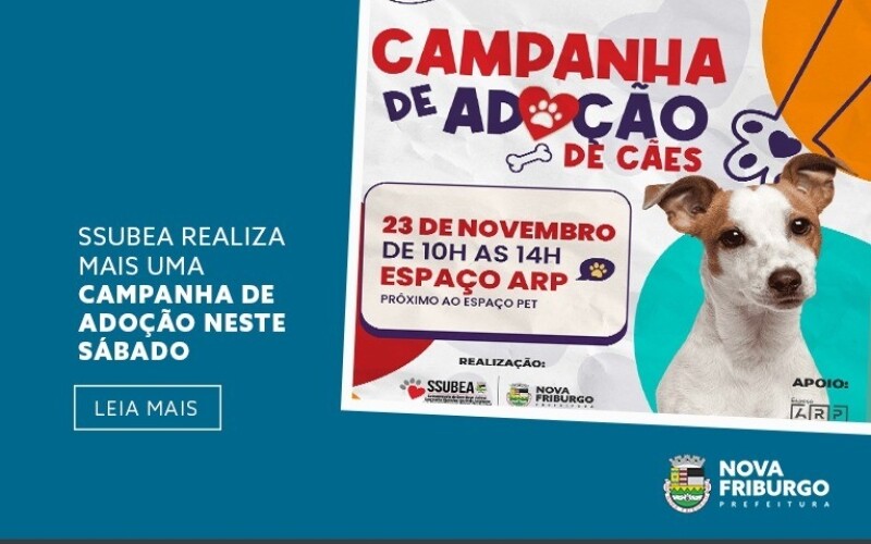 A Subsecretaria de Bem Estar Animal realizará no próximo sábado, 23, mais uma edição da campanha de adoção de cães. O evento acontece das 10h às 1 ...