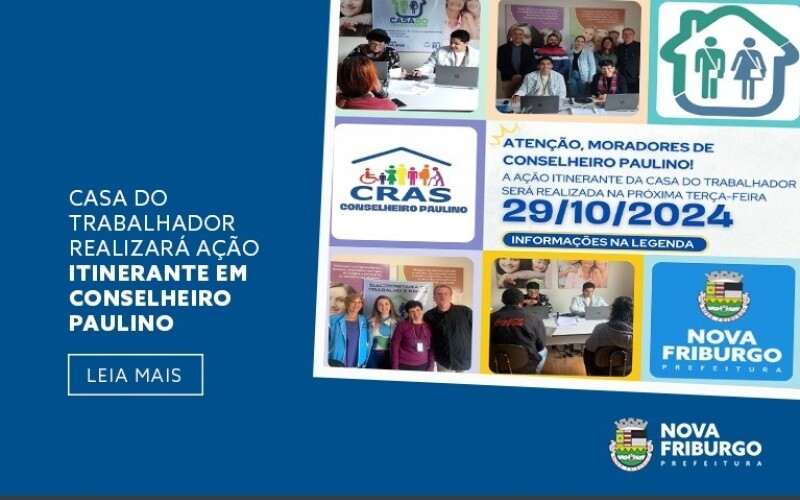 CASA DO TRABALHADOR REALIZA AÇÃO ITINERANTE EM CONSELHEIRO PAULINO Na próxima terça-feira, dia 29, a Casa do Trabalhador reali ...