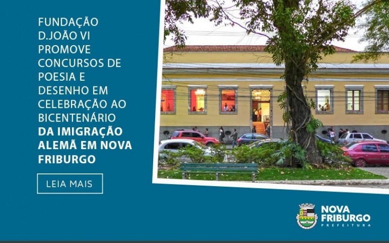 FUNDAÇÃO D.JOÃO VI PROMOVE CONCURSOS DE POESIA E DESENHO EM CELEBRAÇÃO AO BICENTENÁRIO DA IMIGRAÇÃO ALEMÃ EM NOVA FRIBURGO Em celebração ao bicent ...