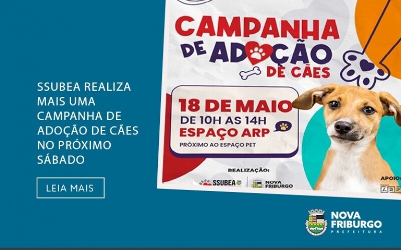 A Prefeitura de Nova Friburgo, através da Subsecretaria do Bem-Estar Animal, realiza no próximo sábado, 18, mais uma edição da campanha de adoção ...