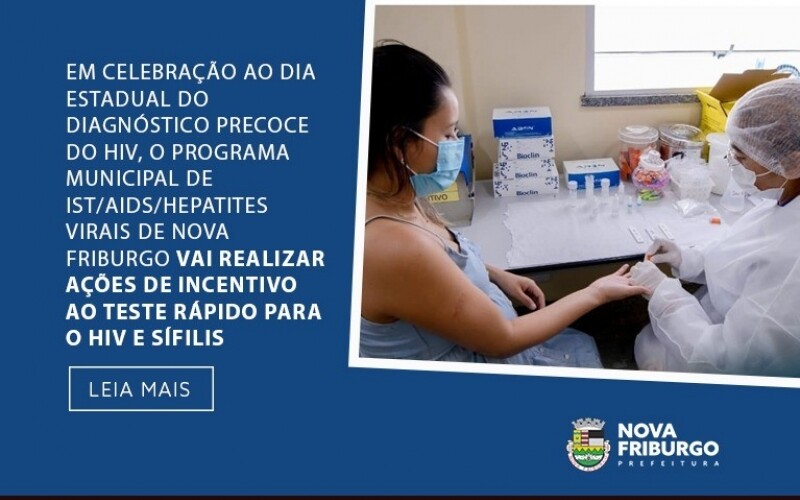 EM CELEBRAÇÃO AO DIA ESTADUAL DO DIAGNÓSTICO PRECOCE DO HIV, O PROGRAMA MUNICIPAL DE IST/AIDS/HEPATITES VIRAIS DE NOVA FRIBURGO VAI REALIZAR AÇÕES ...