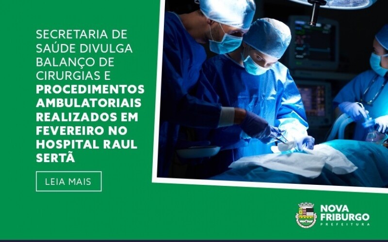 SECRETARIA DE SAÚDE DIVULGA BALANÇO DE CIRURGIAS E PROCEDIMENTOS AMBULATORIAIS REALIZADOS EM FEVEREIRO NO HOSPITAL RAUL SERTÃ A Secretar ...