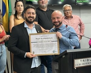 O secretário municipal de Obras, Bernardo Verly, representando toda a equipe da pasta, recebeu na noite de quinta-feira, 7 de dezembro, uma Moção de Congratulação oferecida pelo vereador Max Bill, presidente da Câmara Municipal.