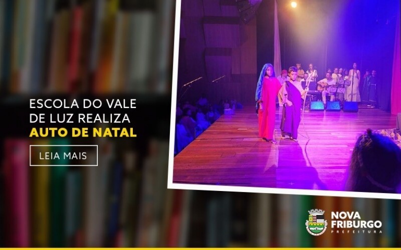 Na noite da última terça-feira, 5, foi realizado no teatro do Nova Friburgo Country Clube o tradicional espetáculo de Natal da Escola Comunitária Municipal do Vale de Luz. Estiveram presentes a secretária de Educação, Caroline Klein, juntamente com representantes da Secretaria Municipal de Educação, alunos, comunidade escolar e local. O Auto de Natal da Escola do Vale de Luz tem mais de 25 anos e é a grande celebração de encerramento das atividades da escola.
