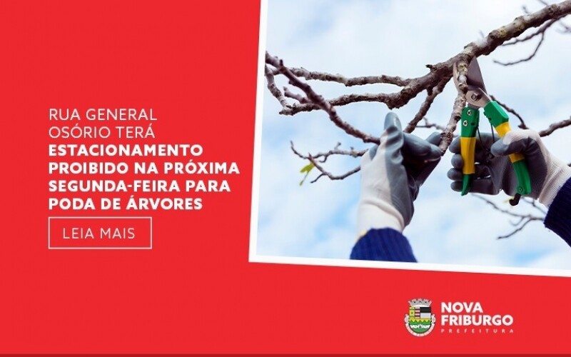 Um trabalho conjunto de poda de árvores na Rua General Osório, no Centro, será realizado na próxima segunda-feira, dia 11, entre equipes da Prefeitura de Nova Friburgo, por meio das secretarias de Serviços Públicos e de Ordem e Mobilidade Urbana, e da Energisa.
