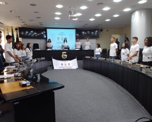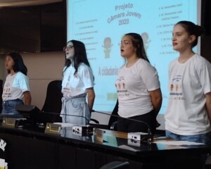 Durante a programação do encerramento do Câmara Jovem, as escolas que participaram, receberam livros com os Projetos de Lei, apresentados e aprovados em sessão ordinária pelos Jovens Vereadores.