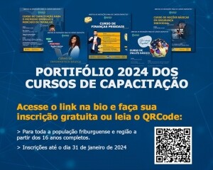 Quem busca qualificação, com cursos gratuitos, não pode perder a oportunidade de se inscrever para participar do Capacita no ano de 2024. Os cursos disponíveis são: Finanças Pessoais; Inglês Básico; Informática Básica; Noções Básicas em Segurança Individual; Capacitação para o Primeiro Emprego e Mercado de Trabalho. As inscrições são abertas para toda população friburguense e da região, a partir dos 16 anos completos.