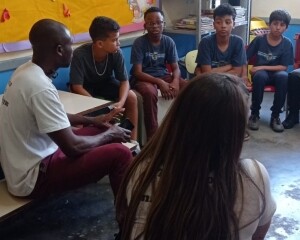 Os professores também participaram com capacitações e roda de conversa sobre desenvolvimento do olhar crítico em caso de suspeita de violência e o fluxo de casos de tabagismo, abordando a prevenção e o tratamento.