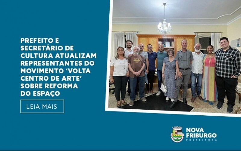 Além disso, também foi passado de forma detalhada o andamento das negociações e os próximos passos para a restauração do histórico Centro de Arte. A Prefeitura de Nova Friburgo conseguiu junto ao Corpo de Bombeiros do Rio de Janeiro a liberação do prédio para que sejam promovidas as obras necessárias em todo o espaço. Superada essa fase, o próximo passo agora é obter a autorização do Instituto Estadual do Patrimônio Cultural (Inepac) para a realização da obra.