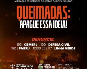 O Corpo de Bombeiros Militar do Rio de Janeiro e a Prefeitura de Nova Friburgo, por meio das secretarias municipais de Meio Ambiente e Desenvolvimento Urbano Sustentável e de Defesa Civil, em parceria com o Tiro de Guerra 01-010 e com o apoio das concessionárias Rota 116 e Águas de Nova Friburgo, lançam no próximo dia 25 de setembro, a partir das 9h, a Campanha de Conscientização, Prevenção e Mitigação de Incêndios Florestais em Nova Friburgo.