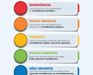 A classificação funciona no acolhimento hospitalar para determinar a urgência e o tempo que levará da triagem até o atendimento médico. Também chamado de protocolo de Manchester, são utilizadas cinco cores que determinam o grau de cada paciente. A cor vermelha representa mais imediatismo, devido à emergência, em seguida há: laranja, amarelo, verde e azul, que é o menos urgente.