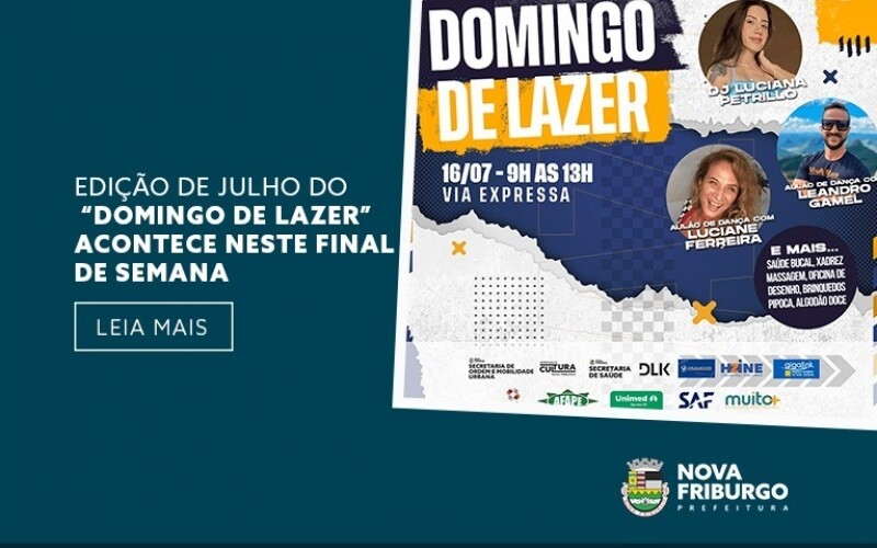 No próximo domingo, dia 16, das 9h às 13h, acontecerá na Via Expressa, em Olaria, a edição de julho do “Domingo de Lazer”, evento realizado pela Prefeitura de Nova Friburgo, através da Secretaria Municipal de Esportes e Lazer.