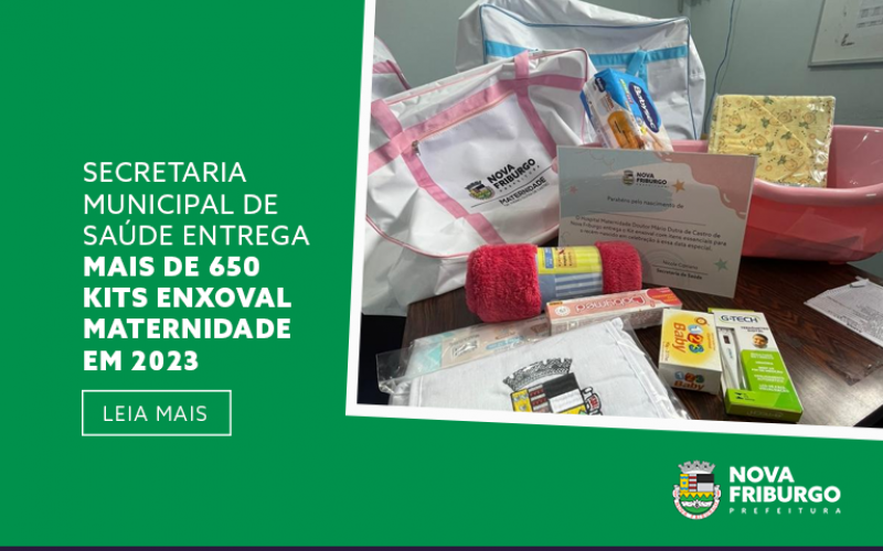 Desde o início do ano, a Prefeitura de Nova Friburgo, através da Secretaria Municipal de Saúde, entrega uma bolsa com itens fundamentais na higiene do bebê para as famílias que realizam o parto na unidade. Dentro da mala personalizada há álcool absoluto 70%, algodão em bolas, banheira para bebê, compressa de gaze estéril, creme de assadura, fraldas descartáveis, hastes flexíveis com pontas de algodão (cotonete), kit manicure (tesoura com ponta arredondada, cortador de unha e lixa), kit escova e pentes, três lencinhos de boca, manta, toalha de banho com capuz, sabonete em barra glicerinado, termômetro, shampoo neutro, travesseiro antialérgico, trocador de fralda e bolsa de tecido com zíper.