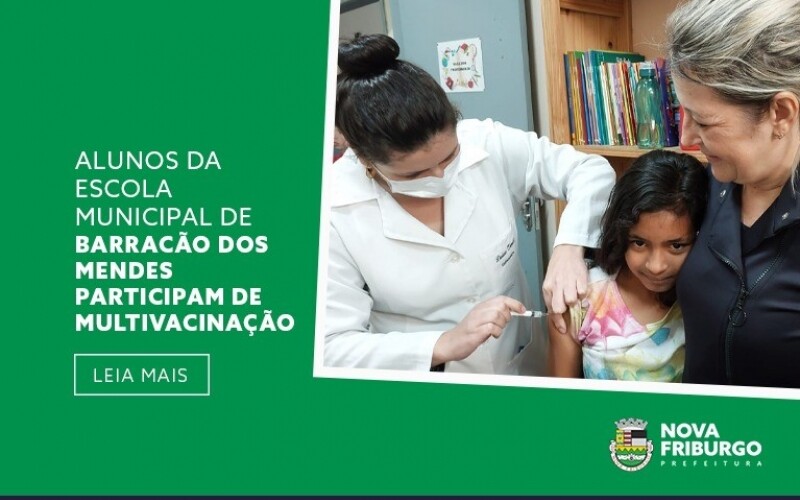 Continuando com a multivacinação nos colégios de Nova Friburgo, a equipe da Coordenação de Imunização da Secretaria Municipal de Saúde esteve nesta segunda-feira, 19, na Escola Municipal Cypriano Mendes da Veiga, em Barracão dos Mendes, zona rural da cidade.