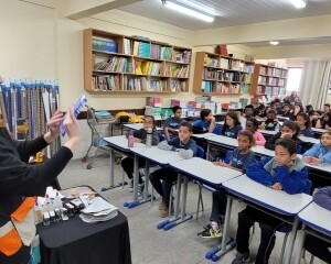 Além disso, os professores e alunos se divertiram assistindo ao espetáculo teatral "O Peixe Mágico", que apresenta os materiais descartáveis, dando valor ao lixo reciclado.