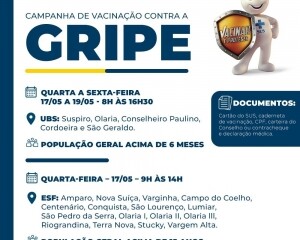 Na quarta-feira, 17, a vacina estará sendo aplicada em todos com mais de 15 anos nas Estratégias de Saúde da Família de Amparo, Nova Suíça, Varginha, Campo do Coelho, Centenário, Conquista, São Lourenço, Lumiar, São Pedro da Serra, Olaria I, Olaria II, Olaria lll, Riograndina, Terra Nova, Stucky, Vargem Alta.