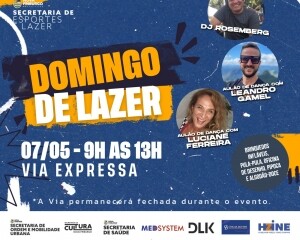 Neste domingo, dia 7, das 9h às 13h, acontecerá na Via Expressa, em Olaria, a edição de maio do “Domingo de Lazer”, evento realizado pela Prefeitura de Nova Friburgo, através da Secretaria Municipal de Esportes e Lazer.
