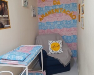 Confira na imagem acima o cantinho preparado pela equipe da Estratégia de Saúde da Família de Riograndina para que as lactantes tenham conforto e um acolhimento especial.