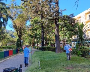 Nesta semana, a Prefeitura de Nova Friburgo, através das equipes da Secretaria de Serviços Públicos, está realizando uma força-tarefa de limpeza em ruas do centro da cidade, incluindo roçada, capina, retirada de resíduos e entulho. A Praça Getúlio Vargas também está ficando linda, com corte do gramado e manutenção dos jardins do parquinho e canteiros próximos.