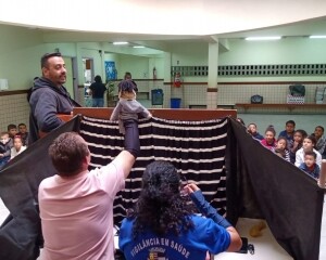 Junto com as crianças do colégio foram realizadas atividades educativas de orientação e prevenção do aedes aegypti, mosquito transmissor da dengue, zika e chikungunya. Tudo isso através de um teatro didático e lúdico com fantoches.
