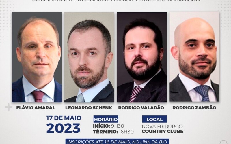 O evento vai homenagear Cesar Vergueiro Chrismann, advogado, procurador regional do Estado do Rio de Janeiro, professor palestrante da Escola de Magistratura e professor emérito de Direito Constitucional da Universidade Estácio de Sá.