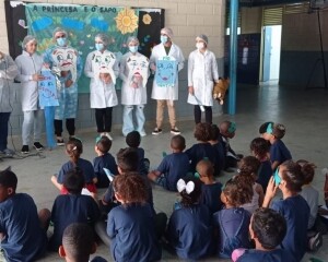 Ao todo, a escola possui 155 crianças, entre o pré I e o 5º ano, ou seja, de 4 a 13 anos. Os profissionais realizaram a antropometria, que estuda as medidas e dimensão das partes do corpo humano, escovação supervisionada, com aplicação de flúor, orientações sobre saúde bucal e higiene corporal, conscientização sobre a covid-19 e atividades educativas sobre animais peçonhentos, através do programa de Informação, Educação e Comunicação em Saúde (IEC).