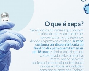 Isso não significa que a xepa está disponível todos os dias em todos os lugares, obrigatoriamente. As doses remanescentes estarão disponíveis de acordo com a procura daquele dia e local, já que, neste momento, a imunização está na segunda fase, que contempla pessoas com mais de 60 anos e imunocomprometidos, seguindo as recomendações do Programa Nacional de Imunização.