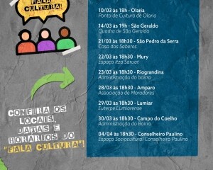 Nesta primeira edição da ação que se inicia sexta-feira, dia 10 de Março, no ponto de cultura de Olaria, serão 9 reuniões em grandes bairros e distritos da Cidade, com a intenção de instruir sobre o Mapeamento Cultural, participação em Editais e Leis de Incentivo, a importância da profissionalização e da mobilização da classe para que sejam fortalecidas.