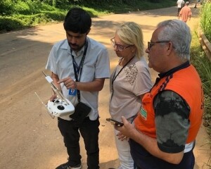 Em campo, a equipe realizou um levantamento da região com auxílio de drone, objetivando melhor identificação do risco existente na área e suporte nas ações subsequentes.