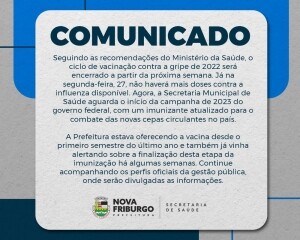 A Prefeitura de Nova Friburgo estava oferecendo a vacina desde o primeiro semestre do último ano e também vinha alertando sobre a finalização desta etapa da imunização há algumas semanas.