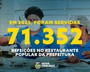 Após balanço realizado pela Secretaria de Serviços Públicos, foi constatado que ao longo de 2022, foram servidas 71.352 refeições. Com reabertura do refeitório do Restaurante Popular em janeiro de 2022, o movimento para almoço voltou ao normal, atendendo servidores da prefeitura e também a população de um modo geral.