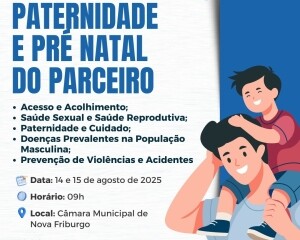 Nos dias 14 e 15 de agosto, Nova Friburgo será palco do curso "Masculinidades, Paternidades & Pré-Natal do Parceiro", promovido pela Coordenação de Atenção Integral à Saúde do Homem do Ministério da Saúde, em cooperação técnica com o Instituto PROMUNDO. A capacitação será realizada na Câmara Municipal de Vereadores, a partir das 9h, e reunirá profissionais da área da saúde de 16 municípios da Região Serrana.
