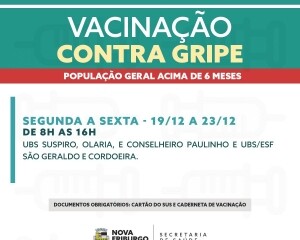Assim como a vacina contra a covid-19 e outros imunizantes importantes, a Prefeitura, por meio da Secretaria Municipal de Saúde, continua oferecendo a vacinação contra a gripe nos postos de Nova Friburgo.