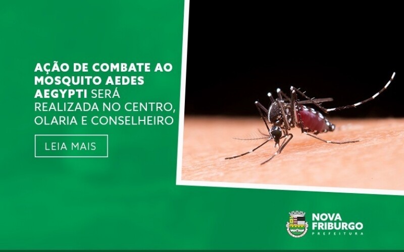 A Prefeitura de Nova Friburgo, por meio da Secretaria de Saúde, sua Subsecretaria de Vigilância em Saúde e a Divisão de Vigilância em Saúde Ambiental, promoverá no dia 17 de dezembro, sábado, uma ação de mobilização social de combate ao mosquito Aedes Aegypti. A ação será promovida simultaneamente no centro da cidade, no bairro de Olaria e no distrito de Conselheiro Paulino.