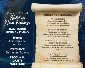 - POEMA: aluna Lais Regly de Aquino e professora Dayhener Marinho - Escola Municipal Dante Magliano.