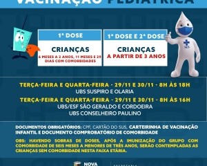 Na última semana, Nova Friburgo começou a imunização para bebês com idade a partir de seis meses até dois anos, 11 meses e 29 dias. Inicialmente, devido ao quantitativo disponível de doses, apenas as crianças com comorbidade receberam a vacina. Na próxima semana, no entanto, a aplicação da vacina Pfizer Baby continua, mas assim que concluir a cobertura deste público prioritário, havendo sobras de doses, serão contempladas as demais crianças sem comorbidade, evitando desperdício do imunizante.
