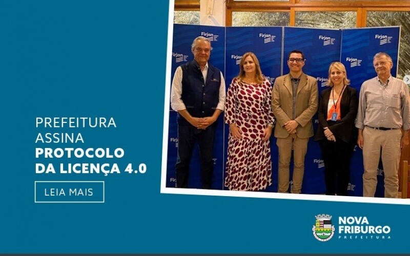 Na tarde da última quarta-feira, 16, foi realizada a cerimônia de assinatura do acordo de cooperação da Licença 4.0 no Nova Friburgo Country Clube. Estiveram presentes o prefeito, Johnny Maycon, a secretária do Meio Ambiente, Andréa Duque Estrada, a presidente da Firjan do Centro Norte-Fluminense, Márcia Carestiato, o presidente da Firjan do Estado do Rio de Janeiro, Eduardo Eugênio Gouvêa e o presidente do Sinduscon, Ediwar Ismério.