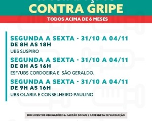 A vacina está disponível para todas as idades. A partir dos seis meses de vida já pode receber o imunizante contra a gripe. Vale ressaltar que todos os anos o imunizante é atualizado, portanto, quem ainda não tomou a vacina em 2022, deve procurar um posto de saúde da cidade.