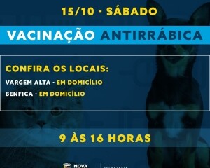 No próximo sábado, 15, a campanha acontece de forma itinerante em Vargem Alta e em Benfica, a partir das 9 horas. Dessa forma, os profissionais irão de casa em casa vacinar os cães e gatos em seus domicílios.