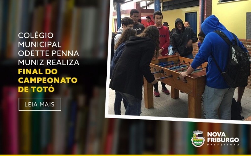 Na tarde da última quarta feira, 28, o Colégio Municipal Odette Penna Muniz fez o encerramento do Campeonato de Totó. Essa foi uma iniciativa do aluno Thalisson Pires, do 6° ano. Estiveram presentes prestigiando o evento, o secretário municipal de Esportes, João Victor Duarte, o subsecretário Aiã Reis, e o coordenador de Educação Física da Secretaria Municipal de Educação, José Tadeu Costa.