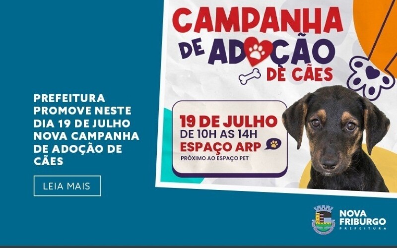 Nova campanha de adoção de cães será realizada pela Secretaria do Bem-Estar e Proteção Animal (Sebea) da Prefeitura de Nova Friburgo, neste sábado, 19, no Espaço Arp, que fica na Avenida Conselheiro Julius Arp, 80, no Paissandu. O início está marcado para as 10h e o término às 14h. O secretário André Moraes salienta que aqueles que desejarem inscrever animais para adoção devem procurar a secretaria munidos de cópias da identidade, CPF e comprovante de residência até esta sexta-feira, com foto recente impressa do animal.