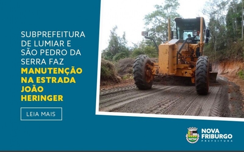 Os cuidados com as estradas nos distritos de Nova Friburgo continuam sendo dispensados pela Prefeitura, como é o caso da Estrada João Heringer, que liga as localidades de Colonial 61 a Vargem Alta. De acordo com o subprefeito de Lumiar e São Pedro da Serra, Jorge Freimann, o trabalho foi determinado pelo prefeito Johnny Maycon e está sendo executado em parceria com o Governo do Estado e com a Secretaria Municipal de Agricultura, através do secretário Adelso Rapozo e sua equipe.