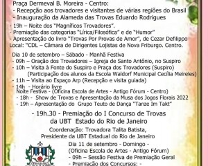 Estiveram presentes a presidente da União Brasileira de Trovadores (UBT) de Nova Friburgo, Elizabeth Souza Cruz; o presidente nacional da UBT, Andréa Mota; e a presidente estadual, Talita Batista, o secretário de Cultura de Nova Friburgo, Daniel Figueira e a secretária de Educação, Caroline Klein, além de diversos convidados e amantes das trovas.
