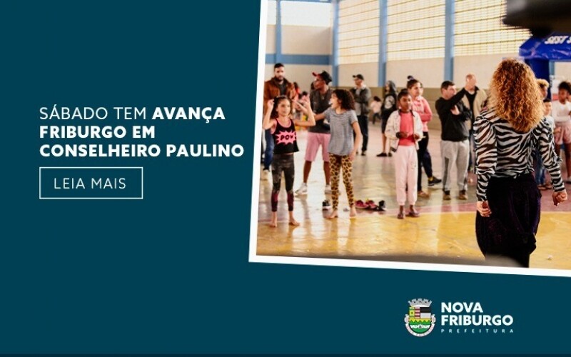 Neste sábado, dia 10, a partir das 9h, será realizada mais uma edição do “Avança Friburgo”, projeto cuja iniciativa é da Prefeitura de Nova Friburgo, através da Secretaria Municipal de Esportes e Lazer, e que conta com o apoio da iniciativa privada. Desta vez, o evento será em Conselheiro Paulino, no Ginásio Alberto da Rosa Pinheiro, ao lado do campo do Pastão.