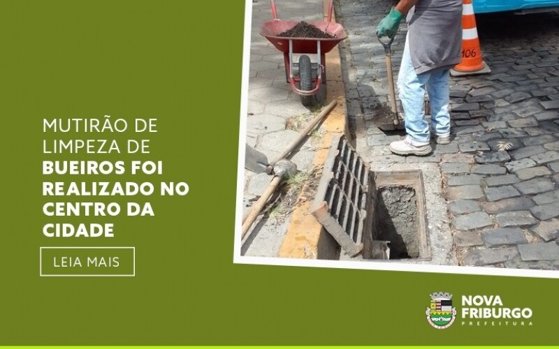 A Secretaria Municipal de Serviços Públicos promoveu durante esta semana um mutirão de limpeza de bueiros no centro de Nova Friburgo. Esse trabalho tem como objetivo combater o mau cheiro causado pelo acúmulo de lixo e resíduos orgânicos nas “bocas de lobo”, além, é claro, de prevenir enchentes com a desobstrução das mesmas.